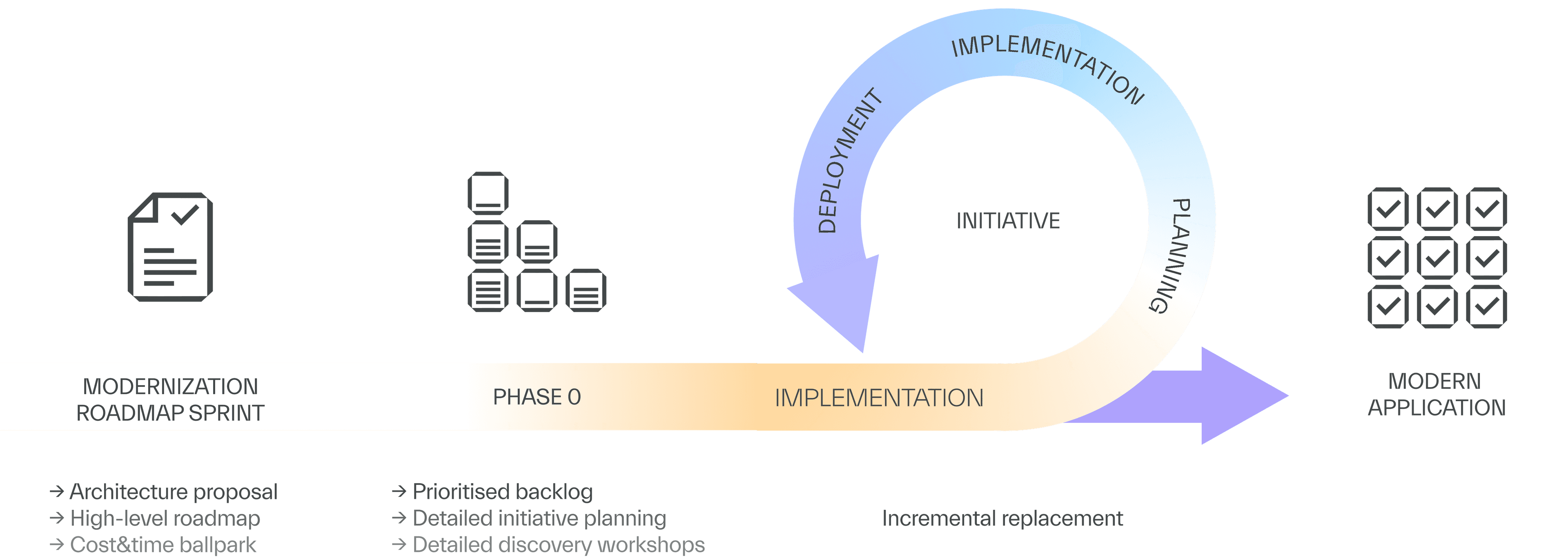 The roadmap sprint ensures alignment with your project goals, so every decision supports your modernization strategy.