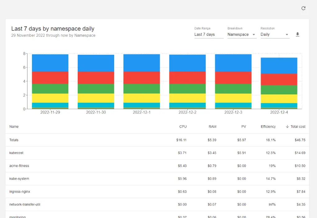 The other is OpenCost. This one is a monitoring tool that divides apps on Kubernetes by category, making it easier to see how much they cost to run. For example, you might find out that this one QA tool costs 50$ a month and is hardly even used!