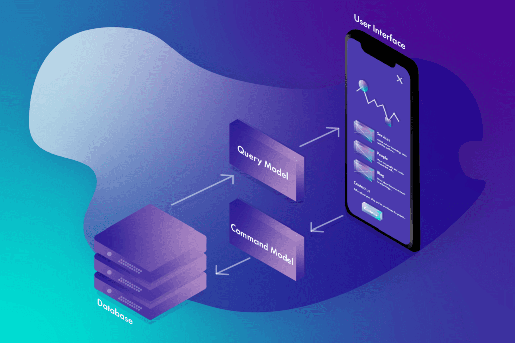 You can ask – how to use CQRS pattern? CQRS is a style of application’s architecture which separates the “read” operations and the “write” operations on the bounded context level. It means that you create 2 data models – one for writing and the other for reading. It’s presented on the scheme below.