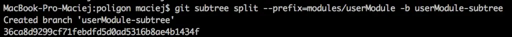 What has exactly happened? Well, the commits regarding the userModule funcionality have been moved to a separate branch. Which branch? The userModule-subtree one. Let’s check out what’s inside: