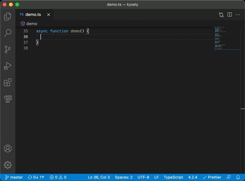 Demo of the kysely result type inference based on SQL query that dev-user provides