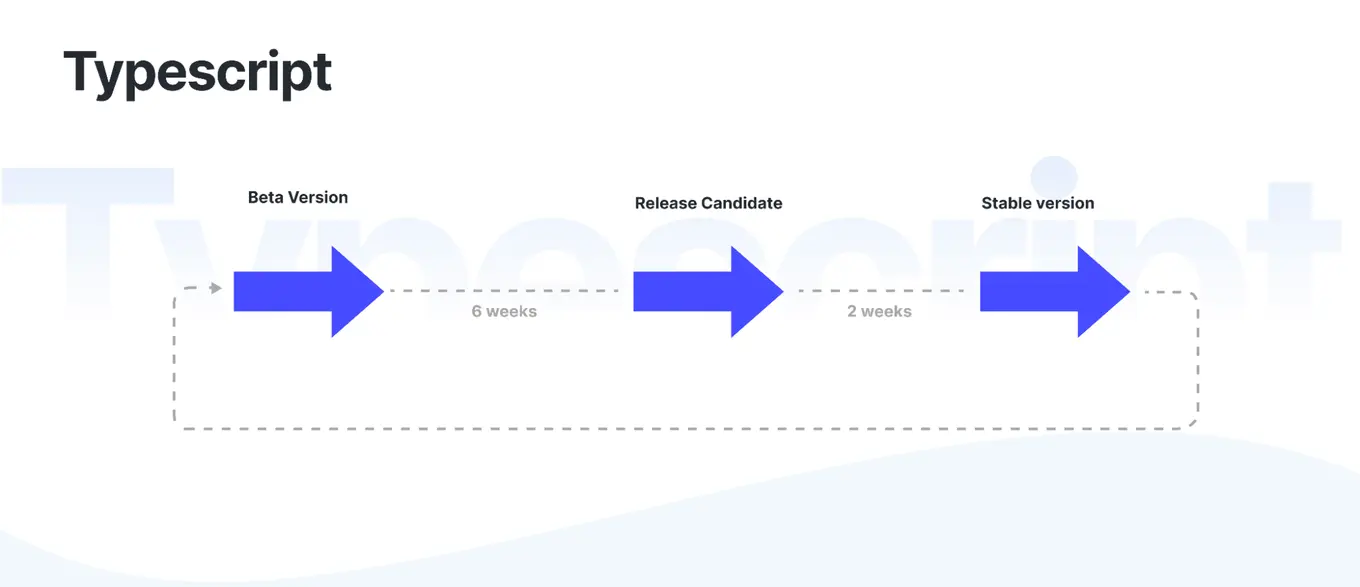 It is something our TypeScript development team can definitely agree on. But enough with that. If you made it this far, you probably know a thing or two about TypeScript already. Let’s get to the new features. For starters, let’s take a look at how Microsoft chooses to handle TypeScript releases.