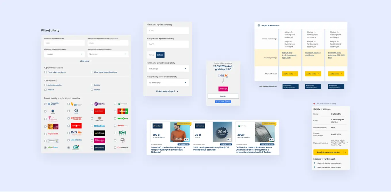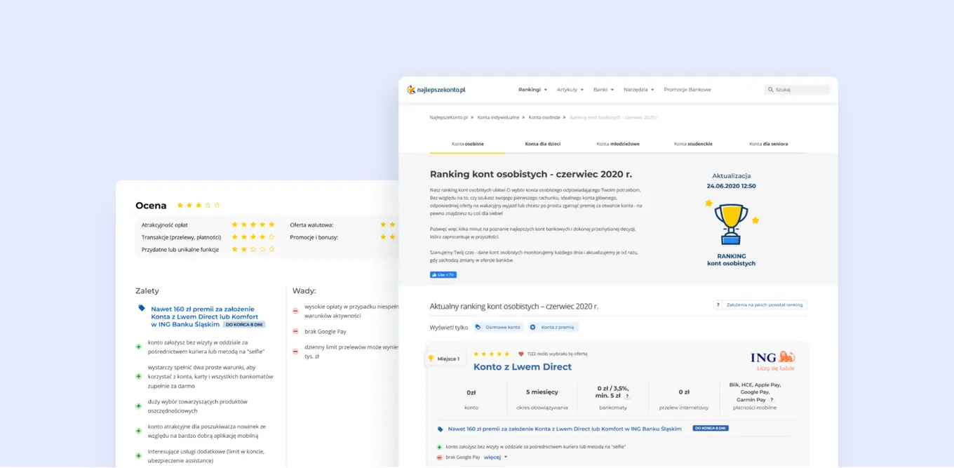Their core product would consist of web portals that provide a variety of content on personal finances such as rankings of the best accounts, deposits, loans and other banking products/promotions, a layman’s dictionary of banking vocabulary, and expert articles on a variety of topics, calculators and more. In particular, the company sought to develop two services: Najlepsze Konto and Najlepsze Lokaty (Polish for “Best Account” and “Best Deposit” respectively).