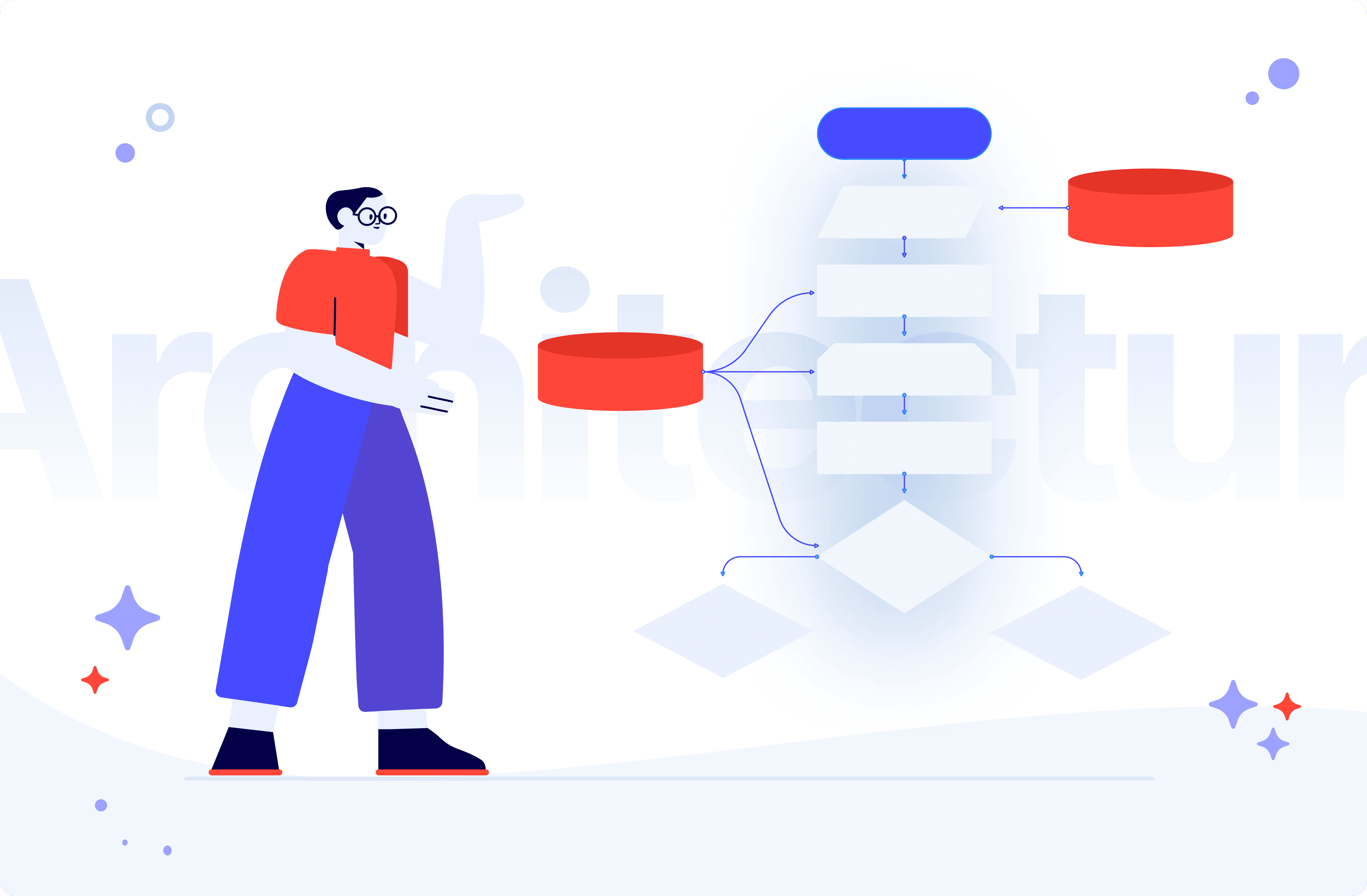 Finally, the same way a traditional Architect designs a building and then lets the builders do the actual work with concrete, bricks, and roofs, a Software Architect delegates well-established and ready-to-be-developed components to the developers.