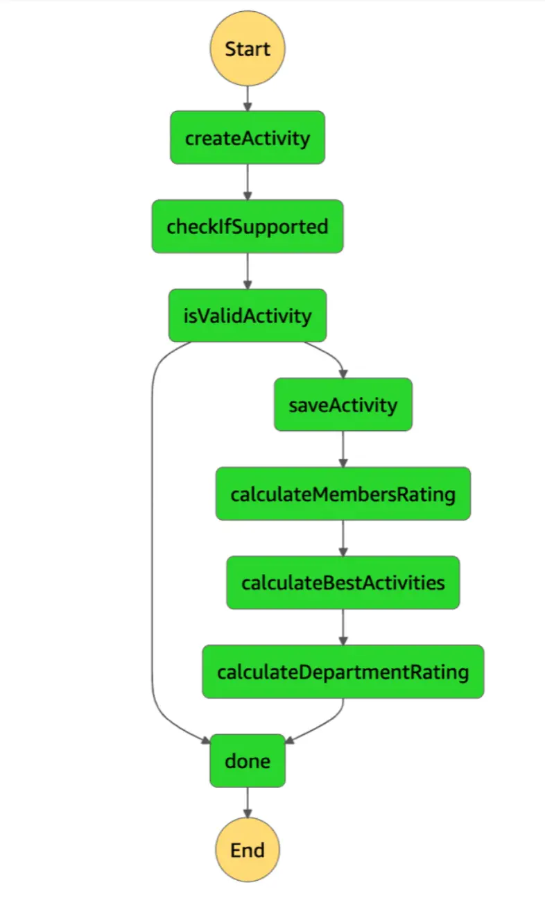 We could use an X-Ray to somewhat solve that problem, yet it will still be far from perfect. That’s why AWS introduced Step Functions. A service that allows us to create a state machine, where each state is represented by a single function. What’s more, we have a visualization of it in a form of a diagram.