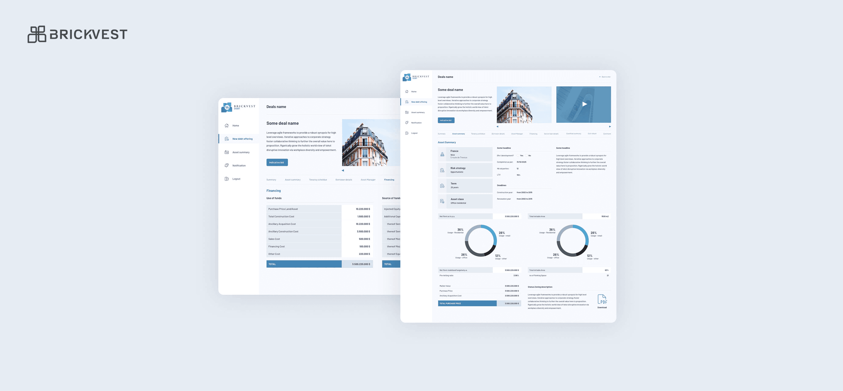 The company provides services for both private investors and large sponsors through BrickVest Classic and BrickVest Debt, while also offering tools for real estate brokers.
