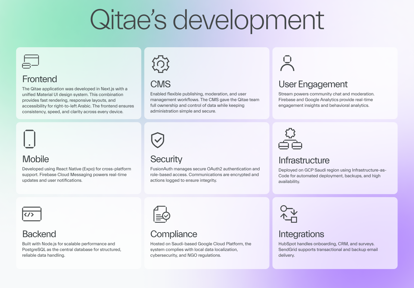 Technically, the Qitae platform set a new benchmark for digital transformation, combining enterprise-grade scalability with civic impact.