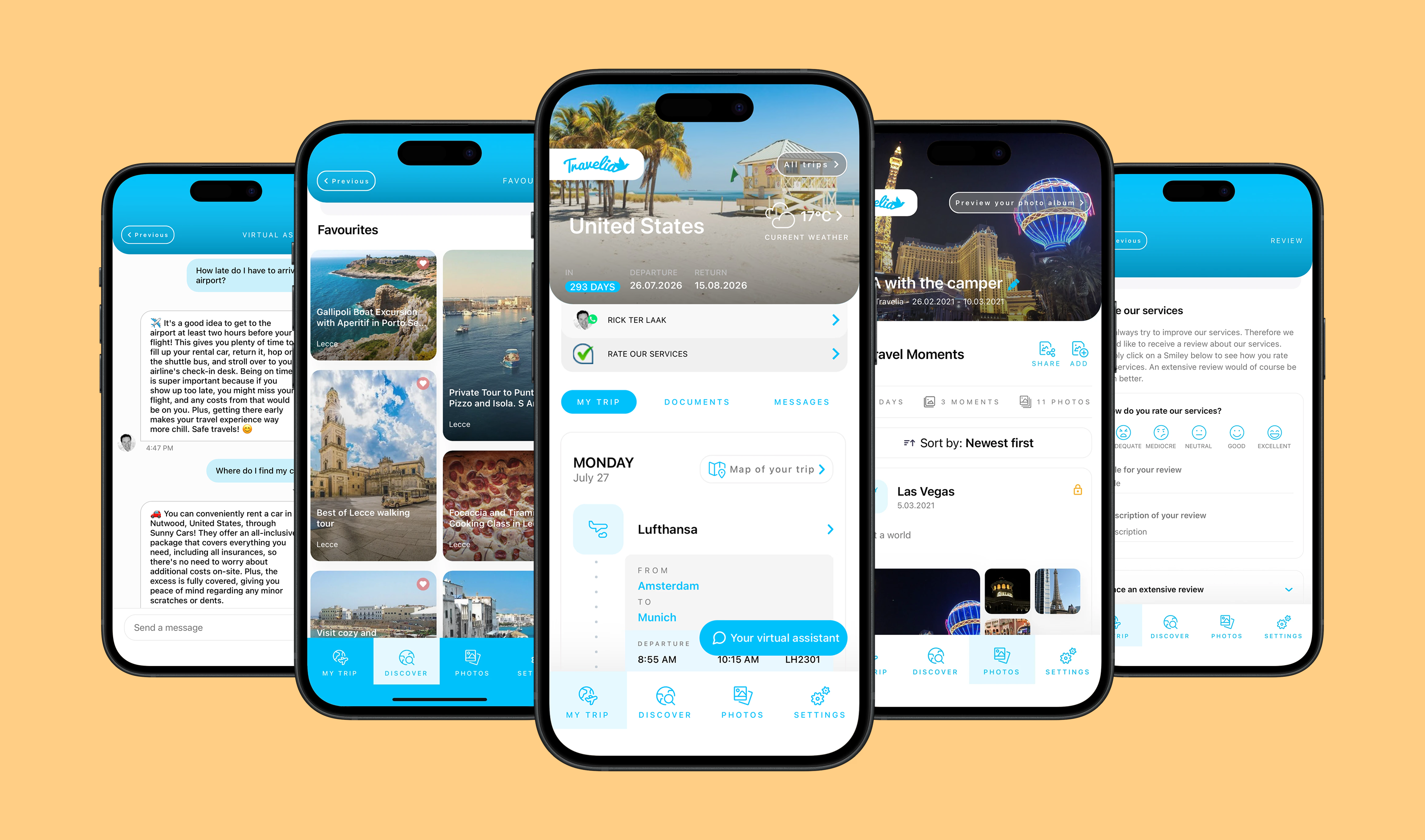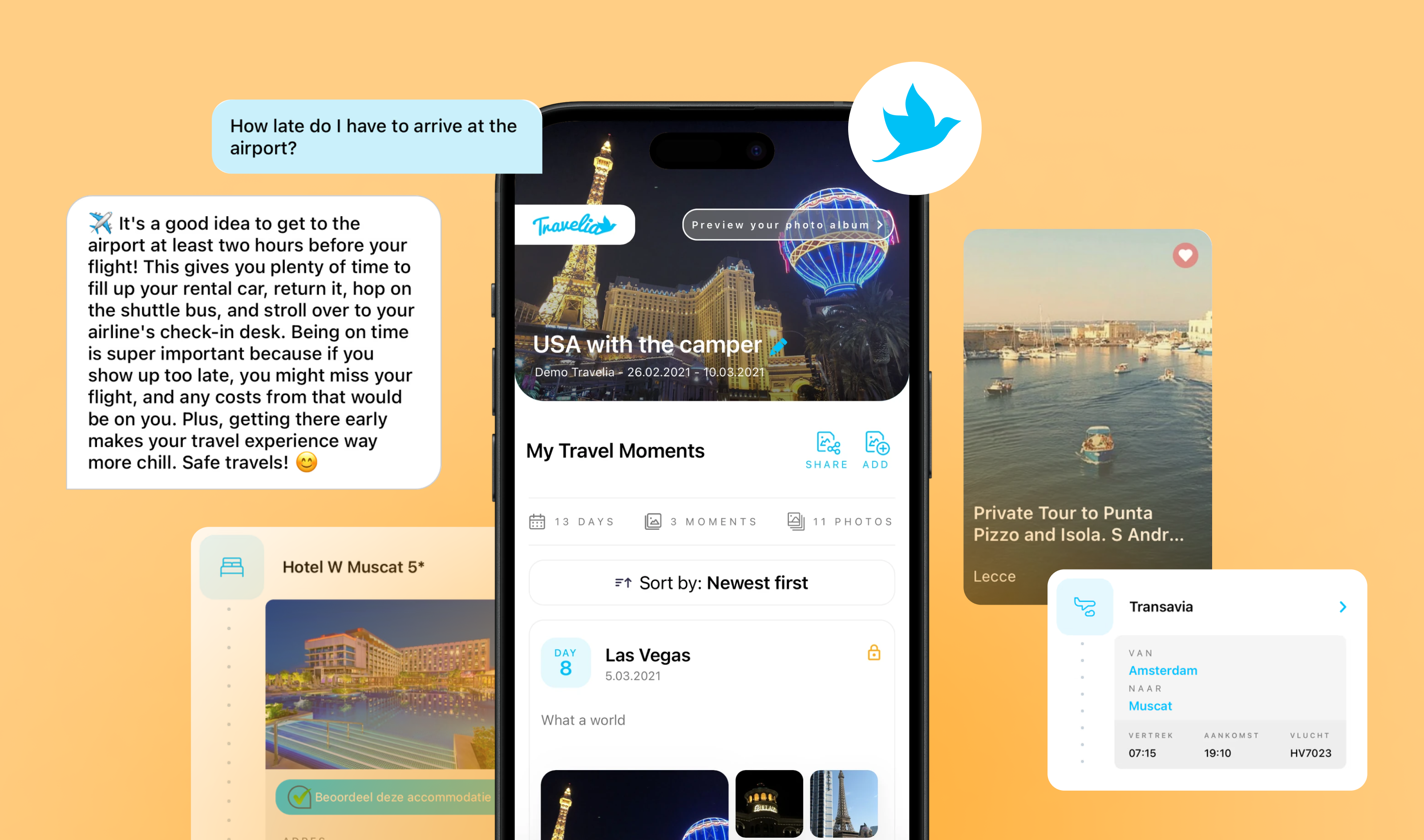 AI-powered travel assistant integrated into Travelia's iOS and Android apps with real-time answers based on booking and location data